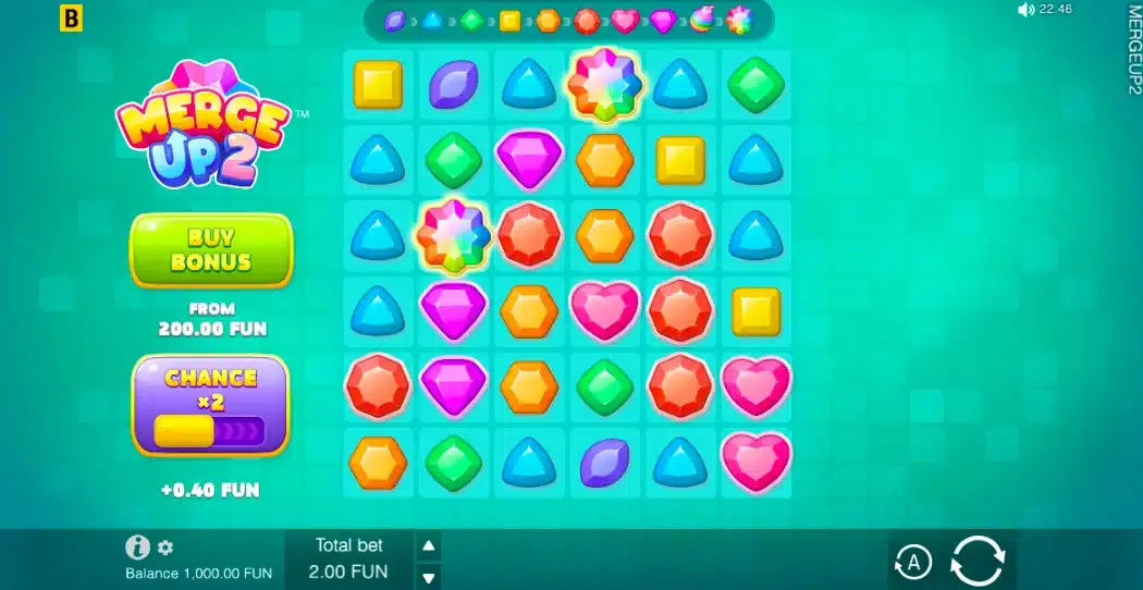 Додатково в Merge Up 2 є опція Chance x2, яка трохи підвищує ставку, але збільшує ймовірність активації бонусної гри.